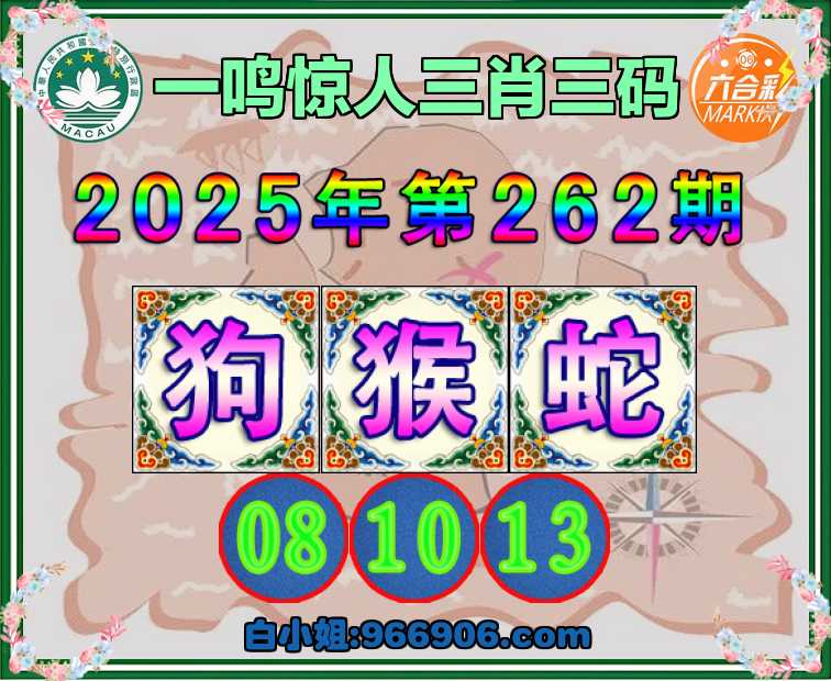 262期:【一鸣惊人】 🍔三肖三码🍔【狗猴蛇】【08.10.13】开:狗44准