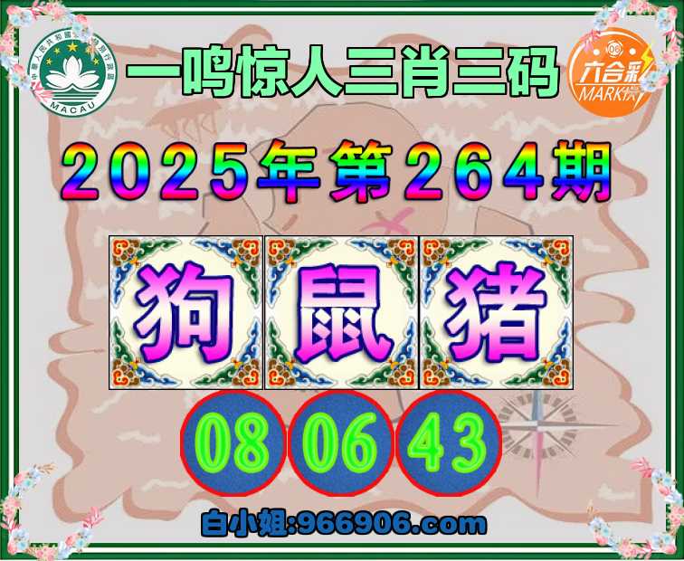 264期:【一鸣惊人】 🍔三肖三码🍔【狗鼠猪】【08.06.43】开:猪43准