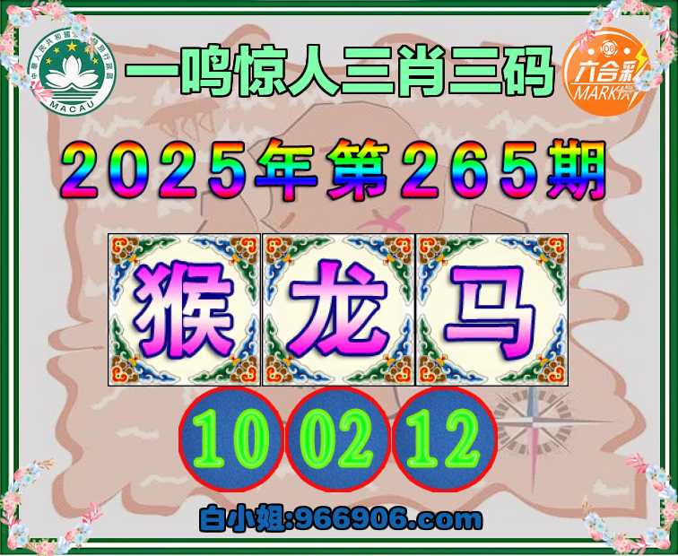 265期:【一鸣惊人】 🍔三肖三码🍔【猴龙马】【10.02.12】开:猴10准