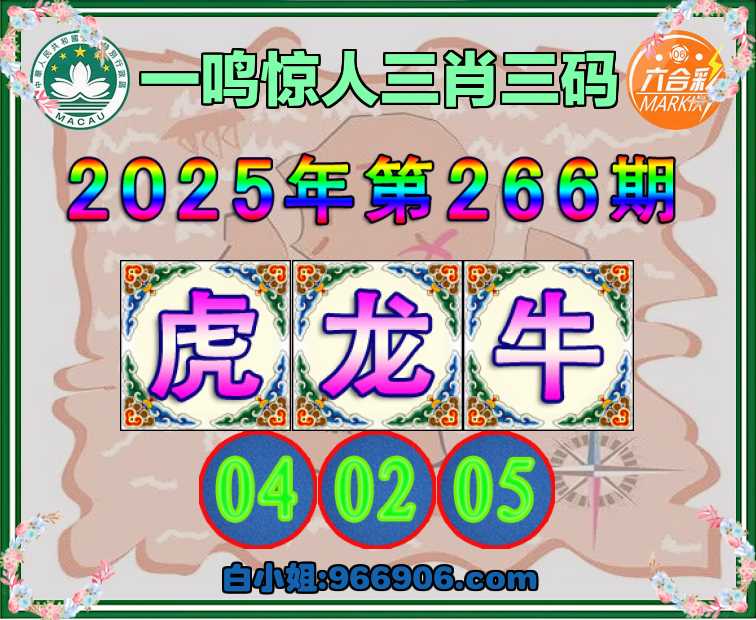 266期:【一鸣惊人】 🍔三肖三码🍔【虎龙牛】【04.02.05】开:牛41准
