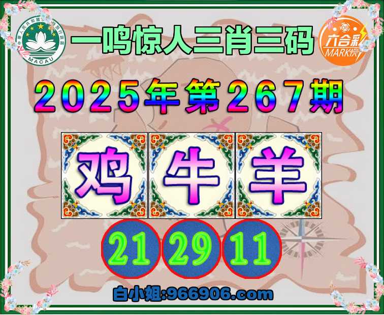 267期:【一鸣惊人】 🍔三肖三码🍔【鸡牛羊】【21.29.11】开:牛29准