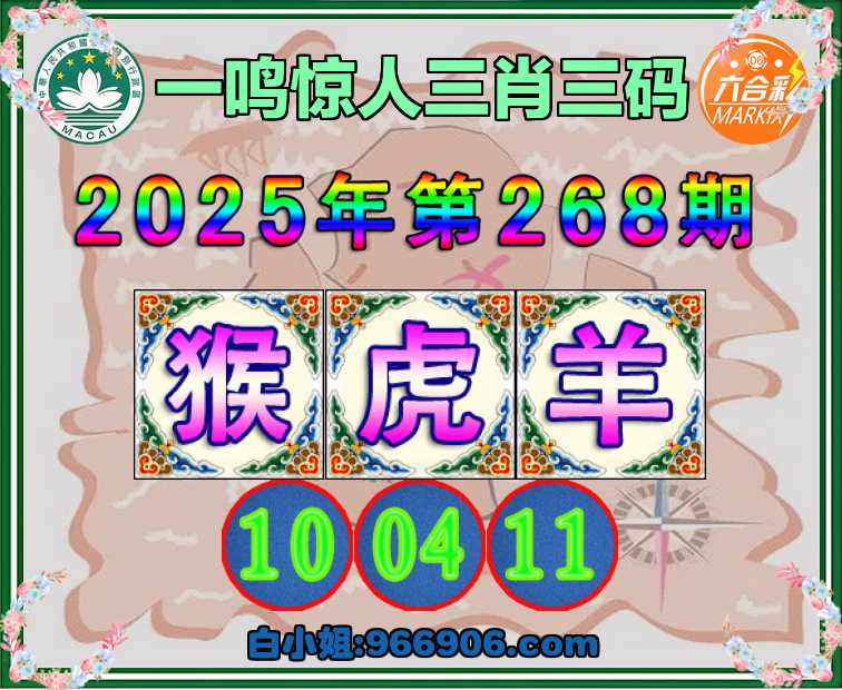 268期:【一鸣惊人】 🍔三肖三码🍔【猴虎羊】【10.04.11】开:猴10准