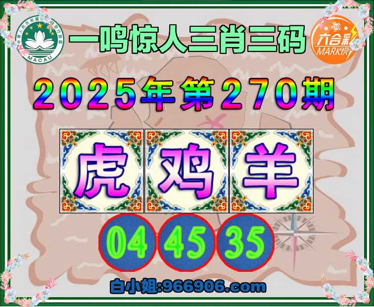 270期:【一鸣惊人】 🍔三肖三码🍔【虎鸡羊】【04.45.35】开:羊35准
