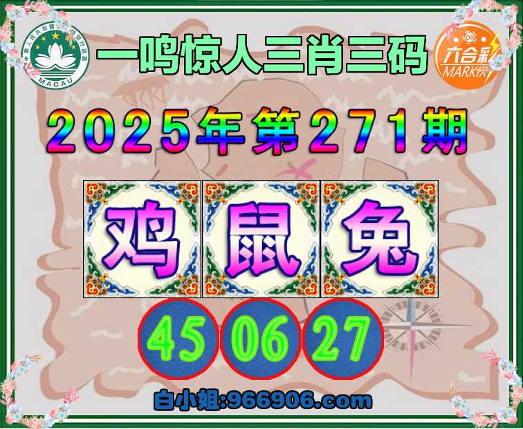 271期:【一鸣惊人】 🍔三肖三码🍔【鸡鼠兔】【45.06.27】开:鼠06准