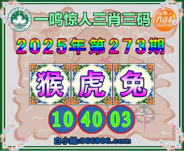 273期:【一鸣惊人】 🍔三肖三码🍔【猴虎兔】【10.40.03】开:虎04准