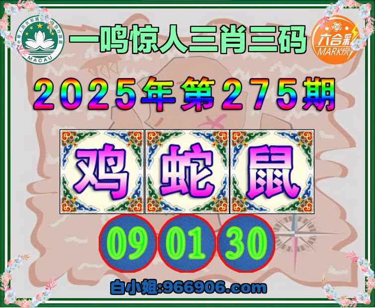 275期:【一鸣惊人】 🍔三肖三码🍔【鸡蛇鼠】【09.01.30】开:鸡45准