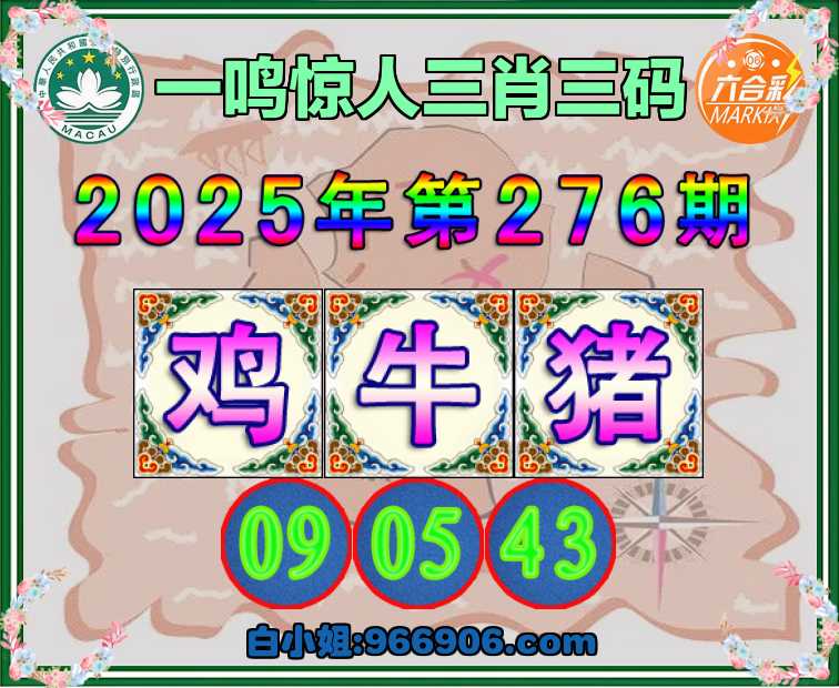 276期:【一鸣惊人】 🍔三肖三码🍔【鸡牛猪】【09.05.43】开:鸡09准