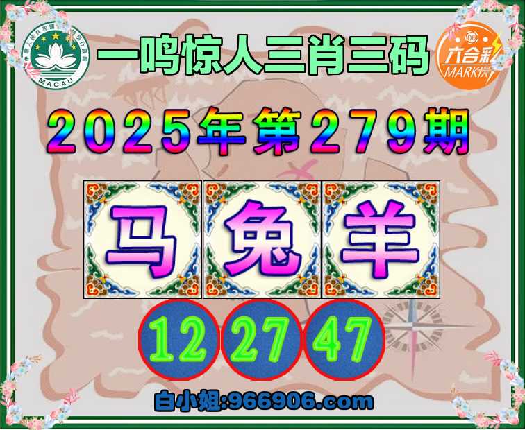 279期:【一鸣惊人】 🍔三肖三码🍔【马兔羊】【12.27.47】开:兔27准
