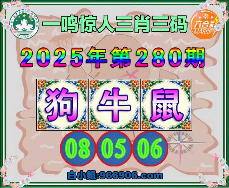 280期:【一鸣惊人】 🍔三肖三码🍔【狗牛鼠】【08.05.06】开:鼠42准