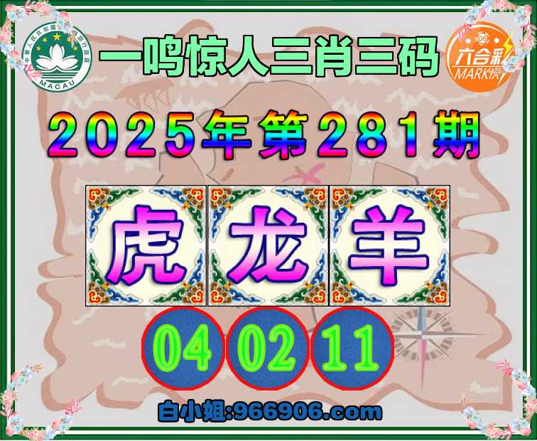281期:【一鸣惊人】 🍔三肖三码🍔【虎龙羊】【04.02.11】开:羊47准