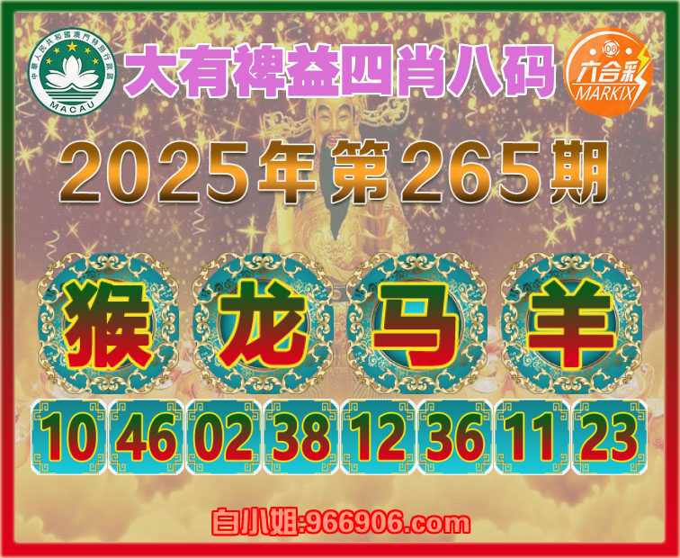 265期:〖大有裨益〗 ☘️四肖八码☘️【猴龙马羊】开:猴10准