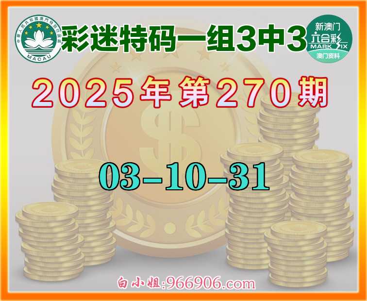 270期:《彩迷特码》 ♣️一组3中3♣️【03-10-31】