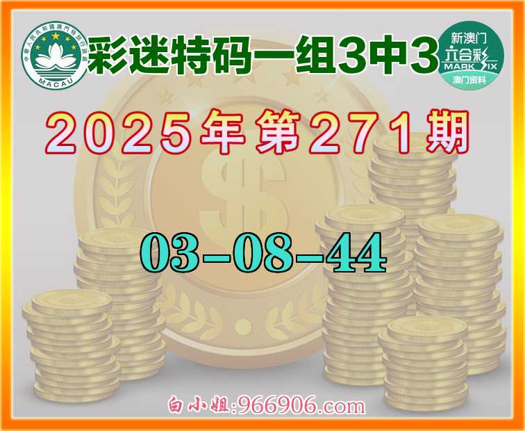 271期:《彩迷特码》 ♣️一组3中3♣️【03-08-44】