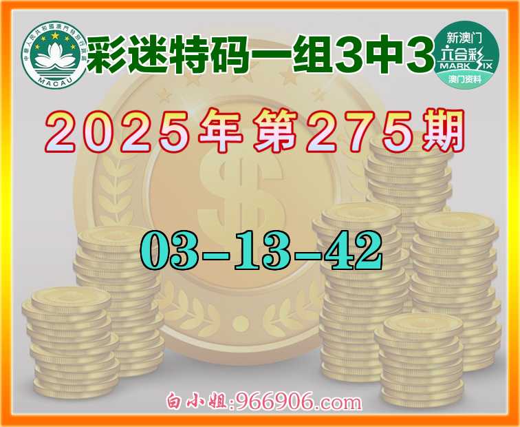 275期:《彩迷特码》 ♣️一组3中3♣️【03-13-42】
