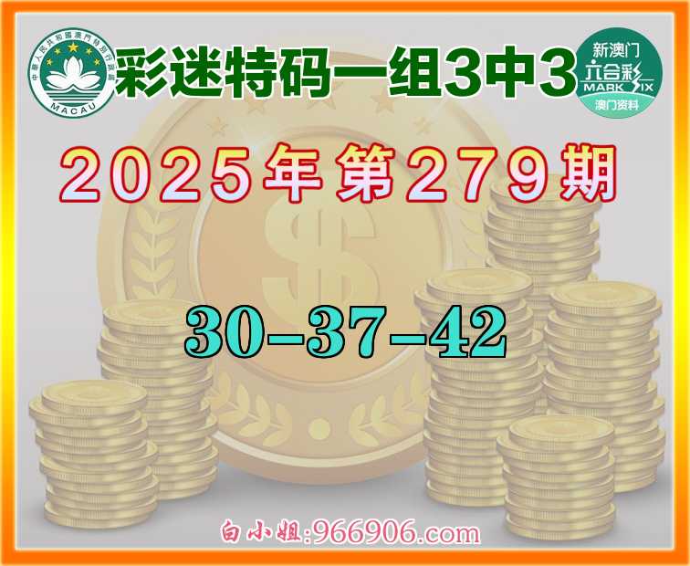 279期:《彩迷特码》 ♣️一组3中3♣️【30-37-42】