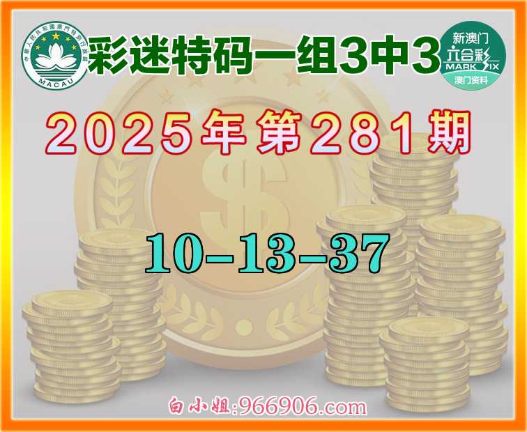281期:《彩迷特码》 ♣️一组3中3♣️【10-13-37】