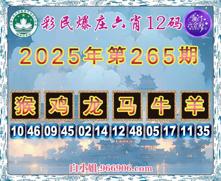 265期:《彩民爆庄》 🎉六肖12码🎉【猴鸡龙马牛羊】开:猴10准