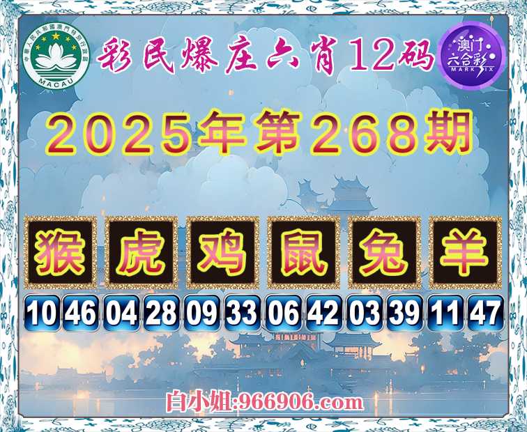 268期:《彩民爆庄》 🎉六肖12码🎉【猴虎鸡鼠兔羊】开:猴10准