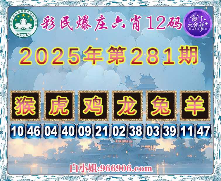 281期:《彩民爆庄》 🎉六肖12码🎉【猴虎鸡龙兔羊】开:羊47准