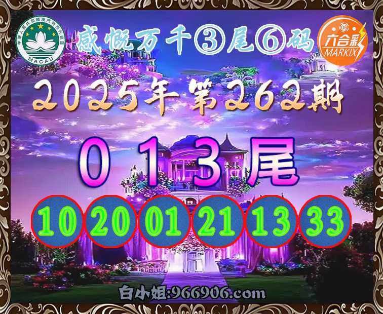 262期:『感慨万千』 ♣️③尾⑥码 ♣️【013尾】开:44错