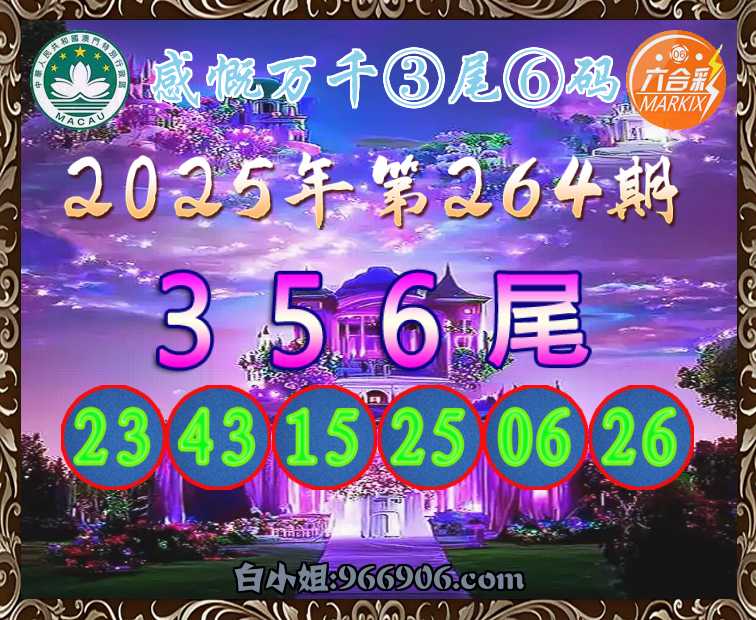 264期:『感慨万千』 ♣️③尾⑥码 ♣️【356尾】开:43准