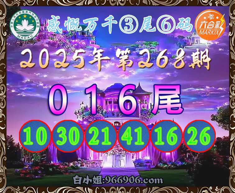 268期:『感慨万千』 ♣️③尾⑥码 ♣️【016尾】开:10准