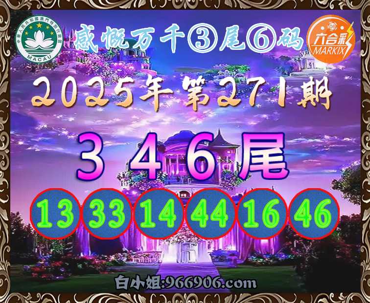 271期:『感慨万千』 ♣️③尾⑥码 ♣️【346尾】开:06准