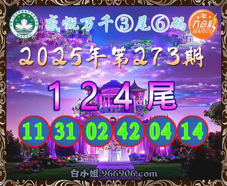 273期:『感慨万千』 ♣️③尾⑥码 ♣️【124尾】开:04准