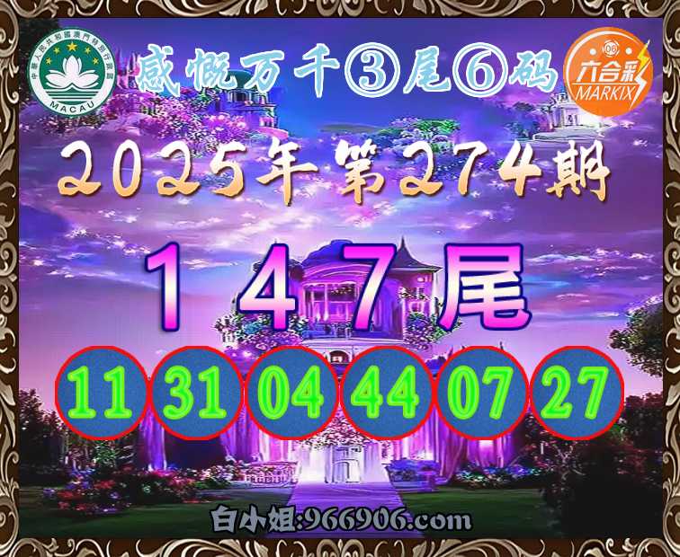 274期:『感慨万千』 ♣️③尾⑥码 ♣️【147尾】开:44准