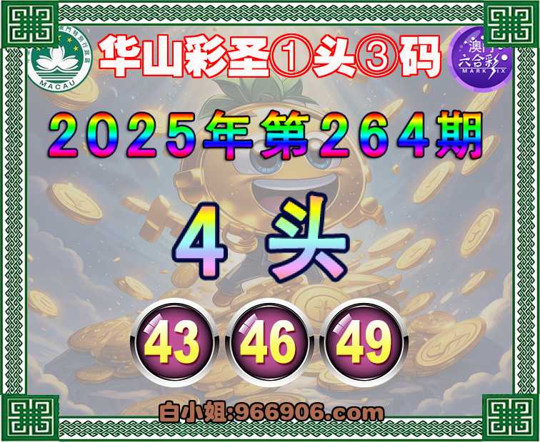 264期:《华山彩圣》 ♥️①头③码♥️【4头主:43.46.49】开:猪43准