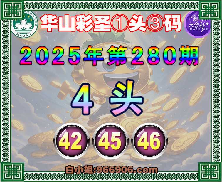 280期:《华山彩圣》 ♥️①头③码♥️【4头主:42.45.46】开:鼠42准