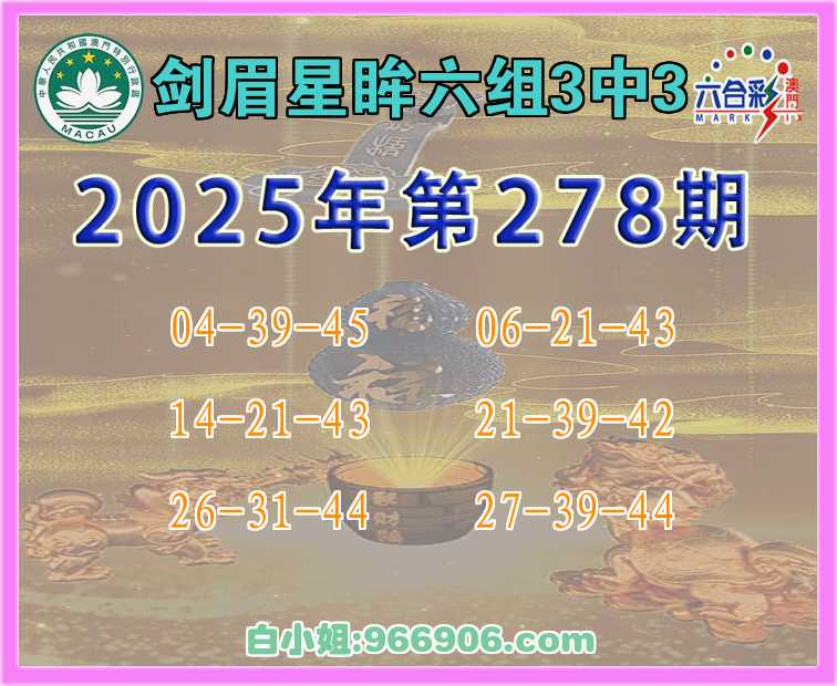274期:《剑眉星眸》 🥩六组3中3🥩