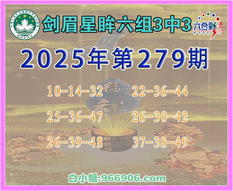 279期:《剑眉星眸》 🥩六组3中3🥩