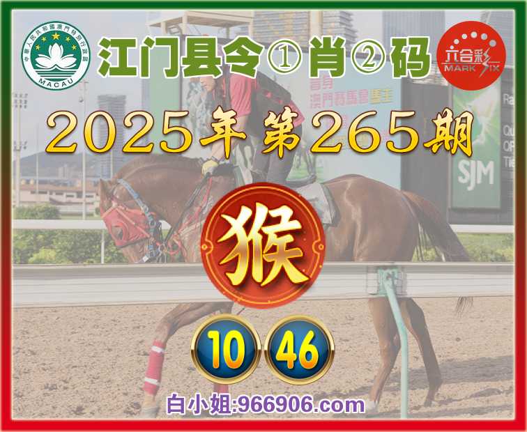 265期:【江门县令】 🤩①肖②码🤩【猴】【10.46】开:猴10准