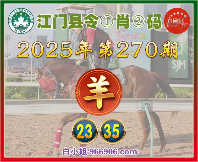 270期:【江门县令】 🤩①肖②码🤩【羊】【23.35】开:羊35准