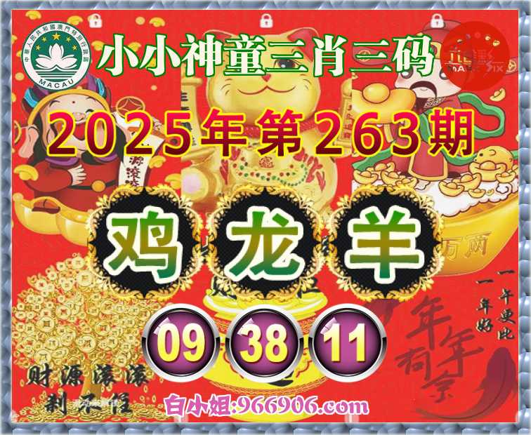 263期:《小小神童》 😍三肖三码😍【鸡龙羊】【09.38.11】开:龙38准