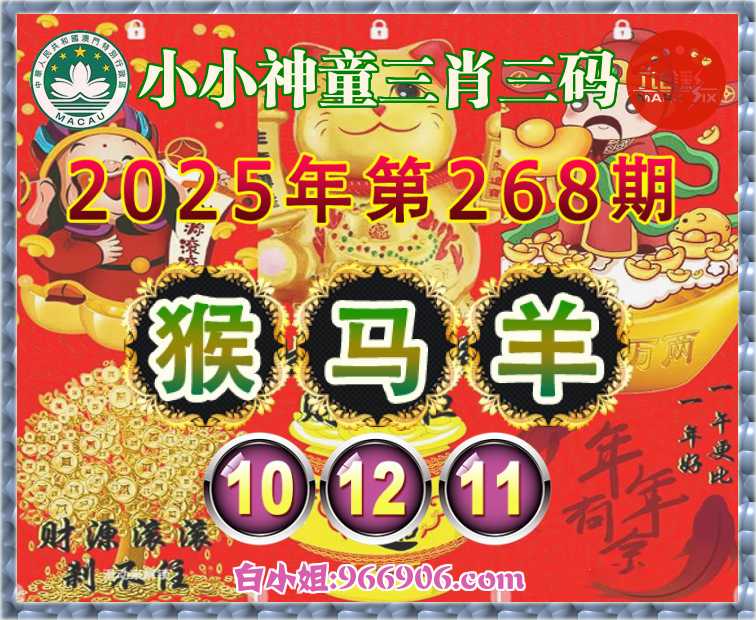 268期:《小小神童》 😍三肖三码😍【猴马羊】【10.12.11】开:猴10准