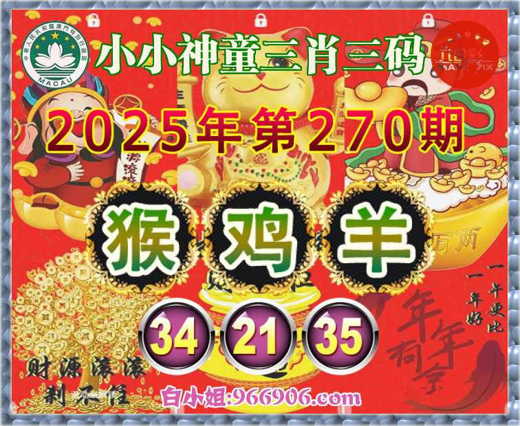 270期:《小小神童》 😍三肖三码😍【猴鸡羊】【34.21.35】开:羊35准