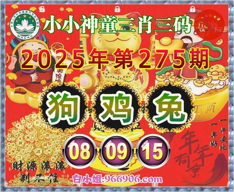 275期:《小小神童》 😍三肖三码😍【狗鸡兔】【08.09.15】开:鸡45准