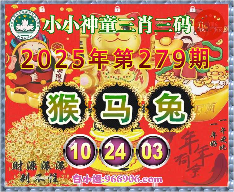 279期:《小小神童》 😍三肖三码😍【猴马兔】【10.24.03】开:兔27准