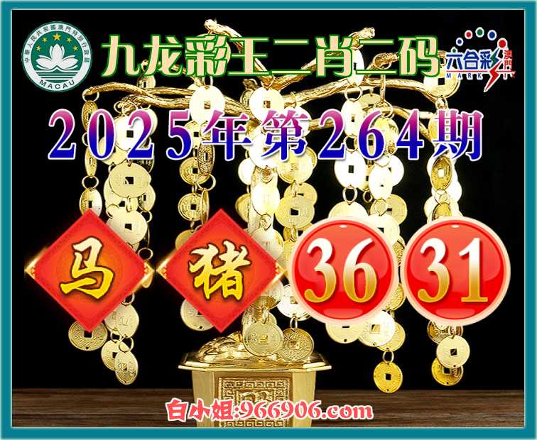 264期:【九龙彩王】 🩴二肖二码🩴【马猪】【36.31】开:猪43准