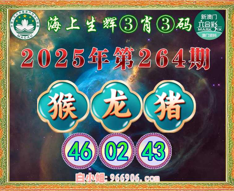 264期: 🚵♀️『海上生辉』 🚵♀️③肖③码🚵♀️【猴龙猪】【46.02.43】开:猪43准