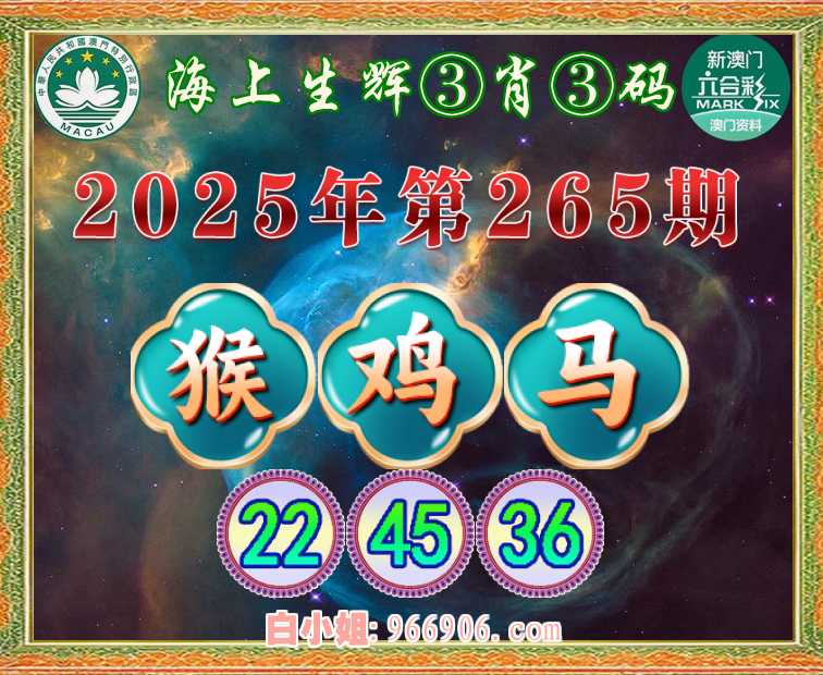 265期: 🚵♀️『海上生辉』 🚵♀️③肖③码🚵♀️【猴鸡马】【22.45.36】开:猴10准