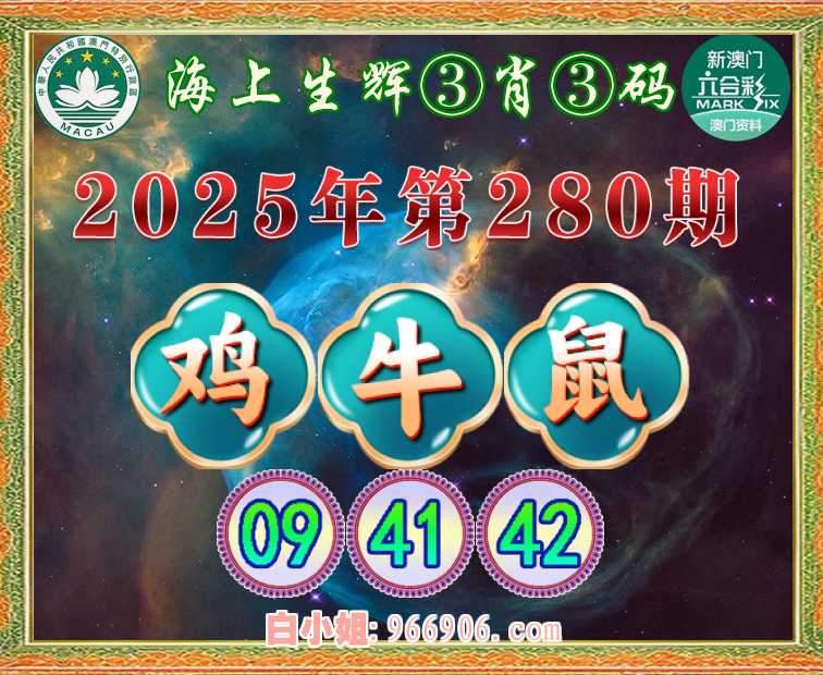 280期: 🚵♀️『海上生辉』 🚵♀️③肖③码🚵♀️【鸡牛鼠】【09.41.42】开:鼠42准