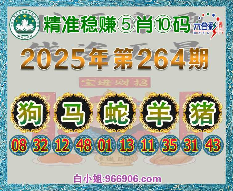 264期:【精准稳赚】 ♠️⑤肖⑩码♠️【狗马蛇羊猪】开:猪43准