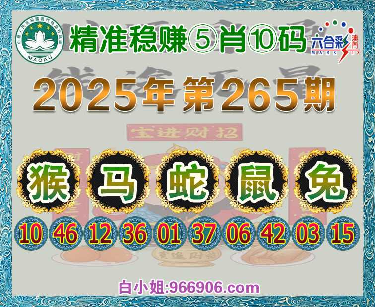 265期:【精准稳赚】 ♠️⑤肖⑩码♠️【猴马蛇鼠兔】开:猴10准