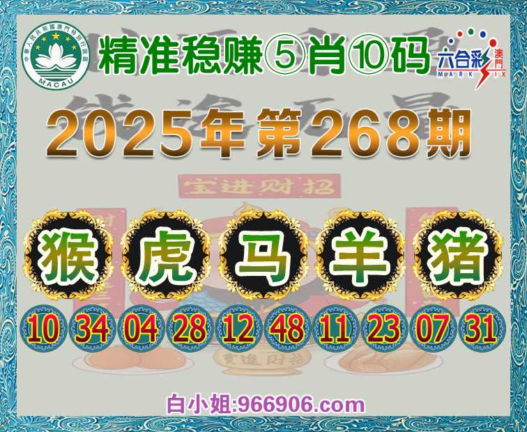 268期:【精准稳赚】 ♠️⑤肖⑩码♠️【猴虎马羊猪】开:猴10准