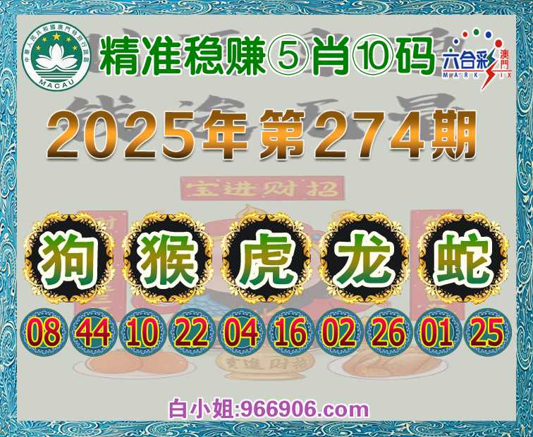 274期:【精准稳赚】 ♠️⑤肖⑩码♠️【狗猴虎龙蛇】开:狗44准