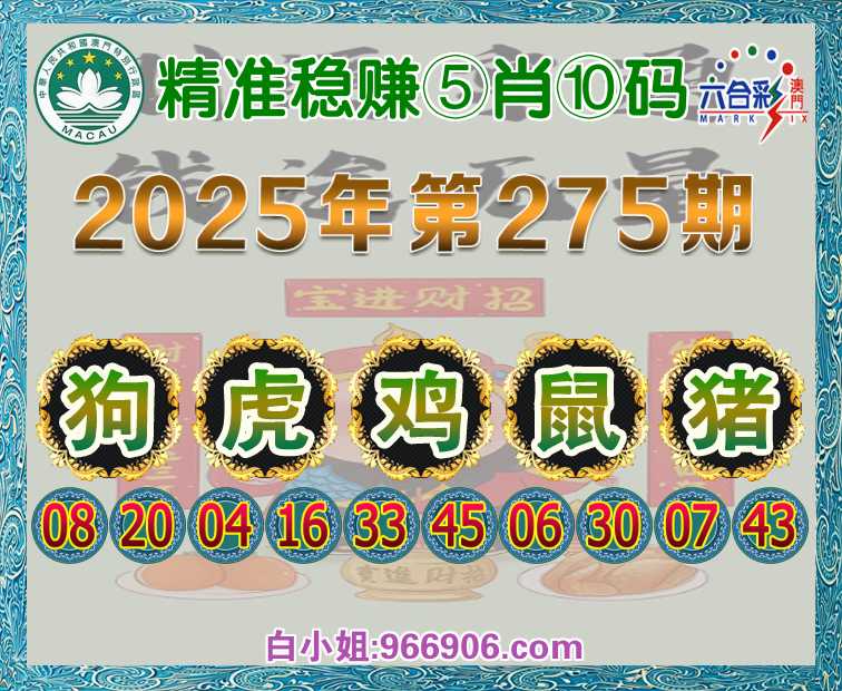 275期:【精准稳赚】 ♠️⑤肖⑩码♠️【狗虎鸡鼠猪】开:鸡45准