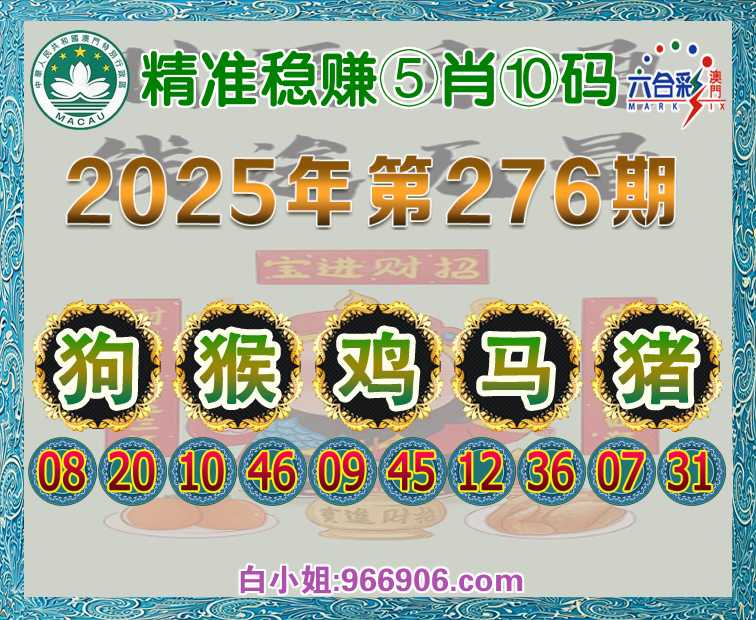 276期:【精准稳赚】 ♠️⑤肖⑩码♠️【狗猴鸡马猪】开:鸡09准
